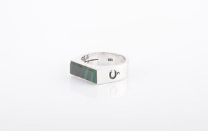 De handgemaakte GARÇ ring van 925 sterling zilver is een knipoog naar de klassieke zegelring, vertaald naar een stoere, mannelijke GARÇ ring met een Malachiet edelsteen als blikvanger. Aan de binnenkant van de ring is een chronometrische schaal geëtst. Een noviteit die een nieuwe vibe geeft aan het mannensieraad.